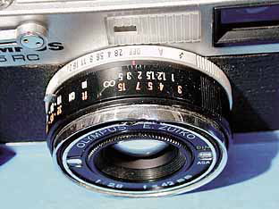 レンズ: Eズイコー42mm F2、8(4群5枚) シャッター: オリンパス、B、1/15〜1/500,セルフタイマー シンクロ: X接点 ファインダー: 採光式ブライトフレーム、0、6倍 焦点調節: 回転ヘリコイド距離計連動 露光調節: ポイントアイCds式、シャッター速度優先EE、マニュアル可 フィルム送り: 背面レバー巻き上げ、クランク巻き戻し フィルター: 寸法: 109×70×50mm 重量: 410g 発売: 昭和45(1970)年10月 価格: 22300円 |