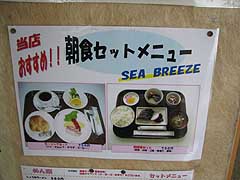 フェリーターミナルにはレストランSEA BREEZEがありました。乗船前の朝食メニューもあり。