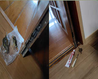 【木製ガラス引き戸の戸車交換】