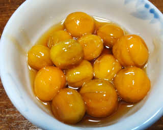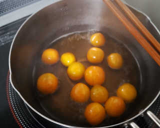 ひとつかみ頂いてきたキンカンのヘタを取っ手ひたひた水に砂糖を入れ煮て甘露煮を作った(^_^)