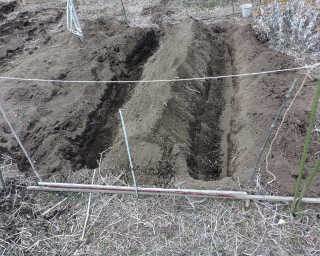 鍬・スコップ作業なかなか大変だが、ウキウキ楽しみ狸の皮算用(#^.^#)。