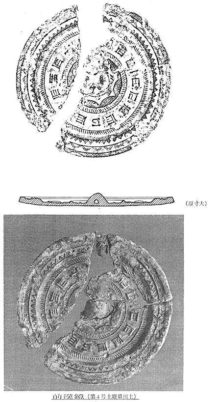 | 前 漢 鏡 1面 鉄 斧 1箇 素環頭刀子 1口 ガラス小玉 536箇 |