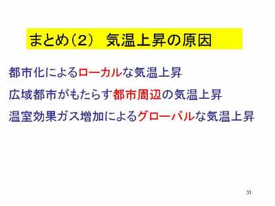 | (31/42) 気温上昇には3つの原因がある。 今後はこれらを意識してデータ解析をしようではないか。 | ![]() |
