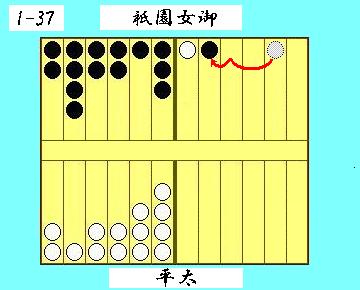 少年時代の清盛、平太が久々に祇園の女御と再会。双六をしようと言われて行うシーン。 番組で最初に双六が登場するのは、平太(前田旺四郎君、漫才師まえだまえだの弟の方)が父忠盛(中井貴一)と祇園女御(ぎおんのにょうご、松田聖子)の屋敷を訪問するシーンでした。祇園女御が「双六をしてみぬか」と持ちかけ、ゲーム開始。やがて終盤を迎え、祇園の女御がわずかにリードしている。家貞「平太様はあと何度か振らねば上がれませぬな」。忠盛「いや。十二を出さば勝ちじゃ。」 私が作った盤面は下図。