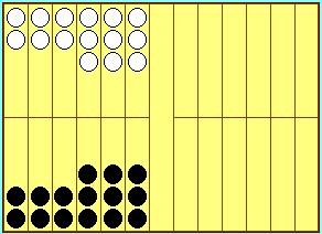1.最初は盤に何も置かない。 2.交互にさいころを2個振り、出た目により自分の駒を置く。 3.2を続けて上図のようになるまで行なう。 4.さいこを2個振り、出た目にある自分の駒を取り除く。 5.自陣の駒がない目を振ったら、相手側の駒を取る。 6.相手の駒を多く取った方が勝ち。