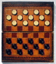 2人用ゲーム。ドローツ(Draught)、ダーメ(Dame)とも呼ばれる。 チェス盤(8×8のマス目の盤)を用い互いに3列目まで市松模様に駒を配置する。 交互に自分の駒を斜め前に動かし、相手の駒を飛び越すと取ることができる。 駒は最初前方向にしか進めないが、一番向こうのマス目まで行くと 昇格して自由に(手前にも向こうにも)動けるようになる。 駒が無くなった方が負けである。