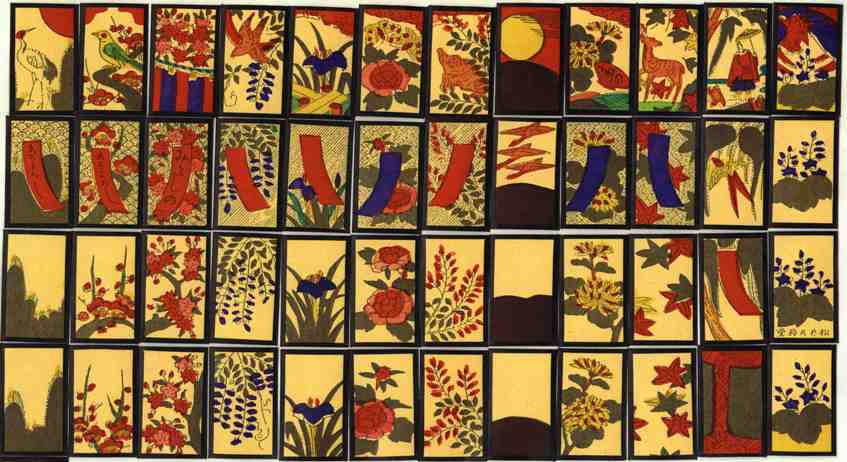 中国に渡った日本人の間で使われた札。 短冊札に背景があり、模様が赤短、青短、その他で異なっている。