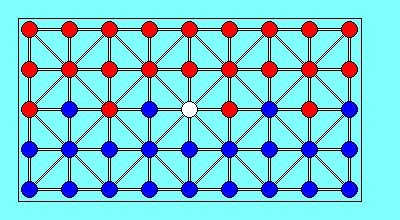 駒を動かして進め、自分の駒の隣に敵の駒があり、 さらにその先が空いていると飛び越すことができる。 飛び越すと飛び越した敵の駒を取ることができ、全部取ってしまうと勝ちになる。