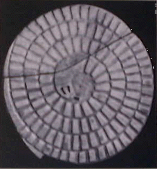 渦巻状の粘土板、石版。レースゲームと思われる。 遺跡から発掘され、ボードゲームの最古の形と考えられている。