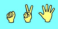 手で行う3すくみの拳。ジャンケンと同じ。手を開く(紙)、指二本(人差し指と中指等、鋏)、握り拳(石)の3種。