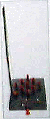 日本では九柱戯と呼ばれる。9本のピンを菱形状に並べ、 横の柱から釣るされた球を投げて倒す遊び。