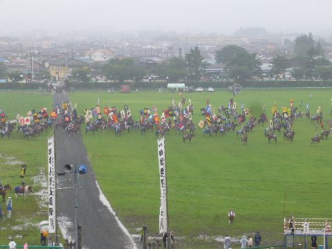 各郷の騎馬が雲雀ヶ原祭場に集結し、郷毎に競馬を行う。