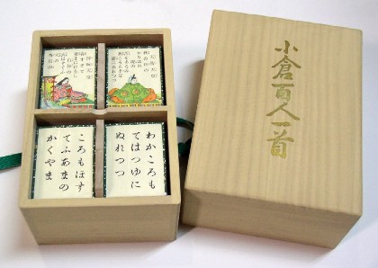 百人一首任天堂、エンゼルトランプ、田村将軍堂、大石天狗堂が製造販売している。1,000円〜100,000円。