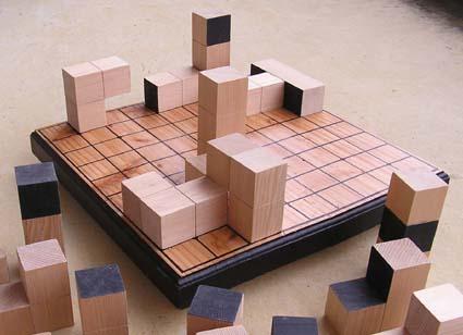 沖縄生まれの琉球将棋「三次元盤ゲーム」を紹介致します。 3次元感覚でゲームが展開され駒は共有、互いに駒を配置して最後に置けなくなった 者が負けるという、シンプルで奥が深い新感覚の盤ゲームです。一見偶然性が強い感 じを受けますが、キーポイントでの判断で勝敗が左右されます。序盤戦での駒の選択 や配置方法がキーポイントを迎える場合に重要な影響を与えます。 (平安名様)