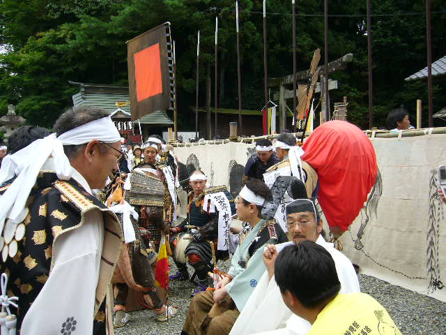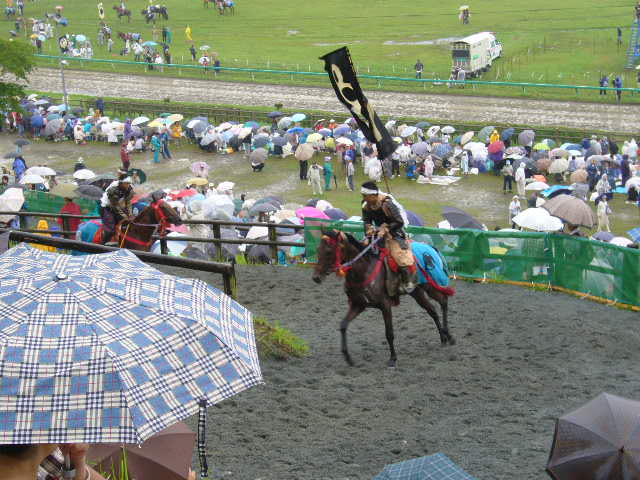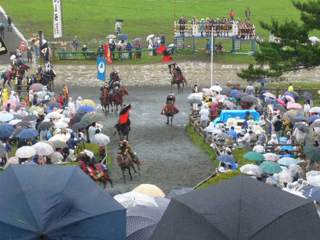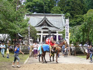 まずは中村神社に出陣式を見に行く。神社には広い馬場があり、既に数十頭の騎馬武者が集結。