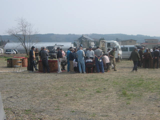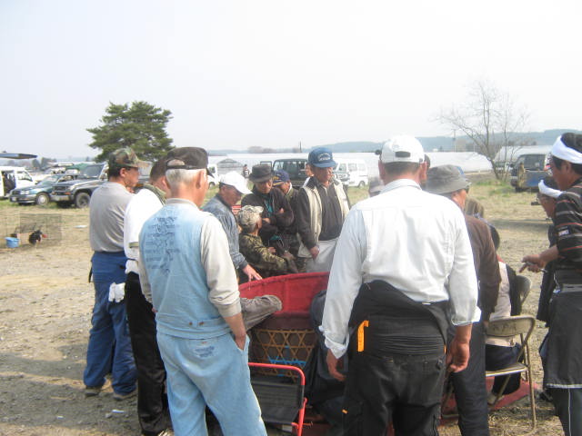 青森県上北郡六戸町の祭りは5月のゴールデンウィークの期間、様々な行事が行われるわけだが、その中に奥羽軍鶏闘技大会六戸場所が含まれている。2010年、場所は川沿いの資材置き場。メイン会場の舘野公園からは少し離れる。車なら数分だが歩けば結構な距離だ。そのためか、集まっているのは関係者ばかりのようだ。