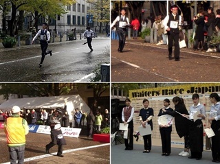 パリや神楽坂では水をこぼしてはいけないので、競技者は競歩のような感じでヨチヨチと歩いていくが、横浜の場合はコップの水をこぼしても良いし、倒れそうになった瓶やコップは手で直して良いので、スタートから全力でダッシュする人間が多く、スピード感はあったが、逆に面白みに欠けた。というのは、コップの水をこぼし、空になったコップをお盆の上に横になった状態にしてしまい、瓶だけに気を付けて走れば全力疾走に近い速さで走れるので、結局体力勝負・走力勝負に近いのである。パリや神楽坂は水をこぼさないようにしなければならず、さらに手を出してはいけないため、走りたいが走れないもどかしさが見ていて笑いを誘う。レース後は時間が記録され、上位者による準決勝、決勝と続いた。協賛企業も多く、ホテルのディナー券などが商品として提供されていた。 (2017.11.23)