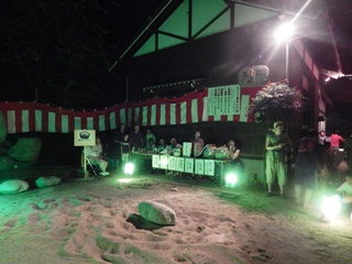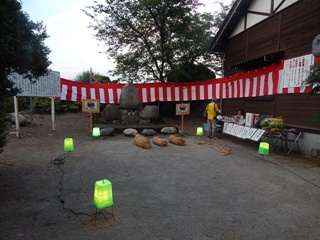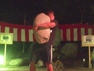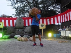 富山県下新川郡入善町(しもにいかわぐんにゅうぜんまち)。富山県の最東端にある下新川郡の町である。 ここの住吉社という神社の夏祭りの中で大盤祭りが行われる。住吉社は駅から約2kmの新屋地区にある神社である。 ここで毎年7月24日の夜に大盤祭りが行われる。祭りのハイライトは盤持ち大会で、神社に奉納されている石を持ちあげる。 ここの盤持ち石は青石(135kg)と御影石(117kg)で、子供用に米俵も3種類用意される。 (2018. 7.24)
