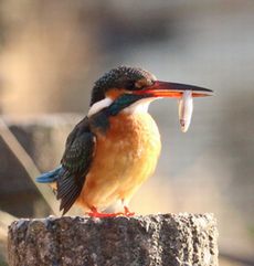暫く釣りをしていると、今度はカワセミの♀が隣の杭に止まり直ぐ近くの水路にぽちゃんとダイビング。