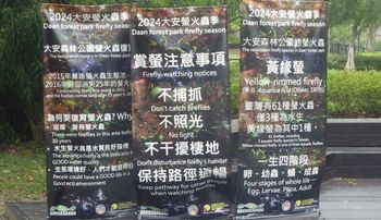 園内を歩くとホタル観賞の注意事項が掛かれた看板が目に付いた。