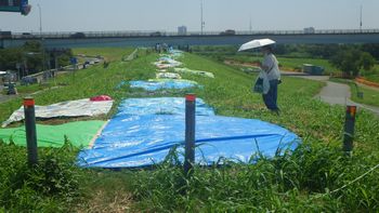 会場の江戸川土手・樋野口あたりはロープが張り巡らされ、櫓がたてられている。