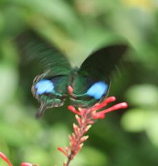 写真右:ルリモンアゲハ(動物園)