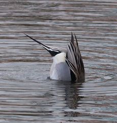 近くの水辺にはオナガガモが数ペアいて、水中に逆立ちして餌をとっていた。