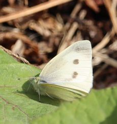 近くのフキの葉に止まったモンシロを見つけ撮った。