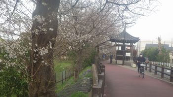 写真:公園周回路の桜並木(水元)既に3割先位になっていた。