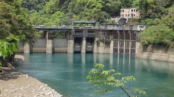 写真:ダム(内洞)渓流を眺めながら平坦な舗装道路を3KMほど進むと滝の展望台につく。