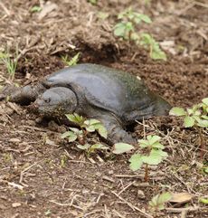 ポイントに向かって葦原脇を歩いていくと道脇にスッポンがいた。