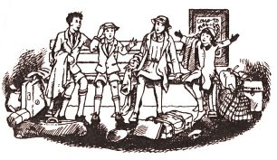 カスピアン王子が伝説の角笛を吹いたその時、ペヴェンシーの子供たちは寄宿舎生活に戻る為に汽車を待っていました。ルーシィはこの年から寄宿舎に入ることになり、ピーターは次の年(朝びらき丸の時)には受験を控えています。最初の冒険から1年を経過しており、その間、彼らは自分たちと同じアスランの国に入った人間をひとりだけしか見つけられなかったようです。