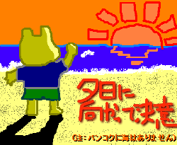 とりあえず親切ぶったタイ人男性の案内で乗ったタクシーで妙な旅行会社に連れて行かれもしたが、無事にホアヒン行きのバスに乗車。英語が話せない以上多少のトラブルは予定の範囲。チカはわかってくれてるだろうか・・・。ところで英語が話せないといえば、今朝(15日朝)、この日記を書くときに、コーヒーと紅茶を注文した。ひとつ20バーツ。高!ありえない。最初は2つで50バーツを言われた。言葉の壁でもんくもうまくいえず、そんな高いわけないと思いつつもボッタくり了承。そんな自分を猛反省。 そんなことを考えていたら、ここの宿代500バーツもボッタくられているような気がしてきた。英語を話せない日本人は、えてしてこういう待遇にさらされるものである。 いつの日か英語をマスターして、英語がわからずオロオロしてるフリをし、そんな弱者をいたぶろうと集まるハイエナどもにギャフンと言わせてやる。・・・なぁんて、前向きなフリをしてみる。 で、話が横道にそれてしまったが日記に戻すと、この日は午後3時にバスでホアヒンに到着。宿を見つけて落ち着けたのが午後4時前。そこからベッドに横になるまでが、 両替で資金調達 → 水着調達 → 海を視察 → 宿に戻って着替え → 海でたわむれ → 宿に戻って水シャワー → ナイトバザール → シーフードレストラン(飲酒) → 夜の散歩 → 就寝 と、密度の濃い一日でした。 特に水シャワーはチカが初体験で大騒ぎ。あまりの悲鳴に、親切な人が尋ねに来てくれました。 ◎後日補足 ボッタくられたと思っていたコーヒー&紅茶だが、その後、他店においても同様の値段であることが判明。 別にボッタくりじゃなかったかも。宿の人、疑ってごめんなさい。 でも、コーヒーはインスタント、紅茶はティーパック。もっと安くなさい。 |