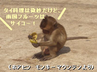 仕方なくホテルの人に出口を聞いて脱出。恥ずかしかったぁ。その後は疲れちゃったので乗り物使いまくり。 モンキーマウンテンでは、本当にサルがたくさんいてややビビりつつ(実際、ジュースを奪われた)、その後は穴場のビーチで海を堪能。夕方に宿に戻って再びナイトマーケットへ。 いや、本当、疲れちゃいました。 |