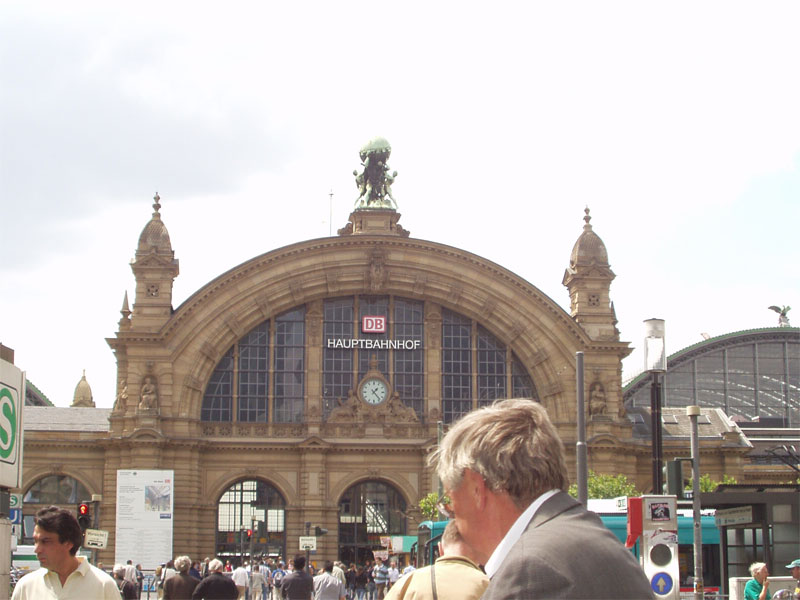 レーマー広場に行ったり、フランクフルトの中央駅の方にも足を延ばしたり、あらゆるお店屋さんをチェック。駅の近くのデパートのような場所で親族関係のお菓子と、自分たち用にハイデルベルクで試飲したワイン(アイスワイン)を購入。 それから駅に戻り、1ユーロショップ(日本で言う100円ショップ)に行き、カバンに入りきらない量の荷物があるためもうひとつカバンを購入。(これで一安心) カバンに今買ったばかりのお土産を早速入れて、駅前をぶらついてみる。駅前から一歩入った所でたくさんのおじさんたちが昼間から外でワインを飲んで真っ赤になっている。 たぶんお祭りがあったんでしょうね。こちらの人は本当にお酒が似合いますね。