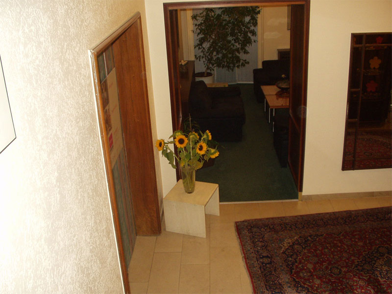 普段の私たちの生活では考えられませんね。こんな時間から散歩なんてこと・・・。さすが、旅行ということがあって、元気です。 (*^o^*) 部屋を出て階段を下っていくと、昨日は気づかなかった(疲れてたからかな?)ひまわりが飾ってあった。 なんか、すごくこのホテルのインテリアとマッチしてる気がして写真をパチリ(o^_^o)