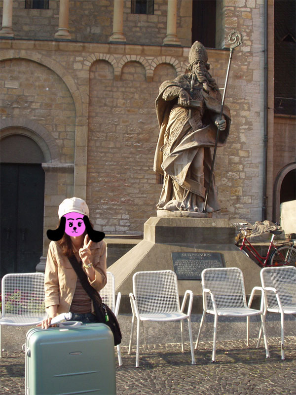 前々から海外でやっている朝市にはとても興味があり、行ってみたかったのです。ついに念願も叶いそうです。会場に早めに着いてしまったらしく、まだ準備中。 思わず時間が出来てしまい、大聖堂の前にあった像と記念写真。 もちろん彼がどなたかは知りません。いけませんか? 観光なんてそんなものですよ。(^-^)v