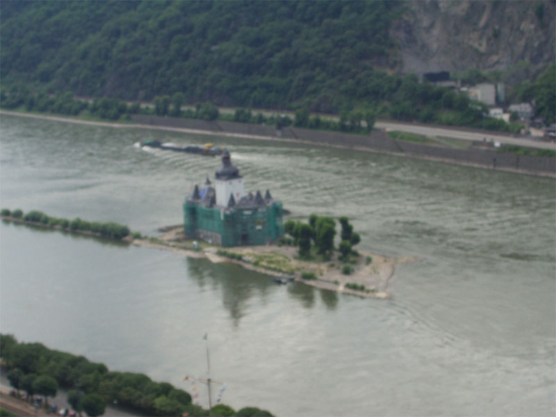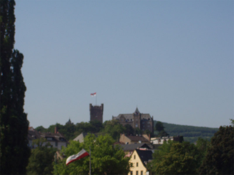 このお城はプファルツ城です。ちょっとブレてしまってますが・・・(-_-;)まあ、簡単に言いますと、昔の税関城ですね。 今は工事中なのか、網みたいな物がかかっていて残念です。 いろいろ町を散策したのですが、今までの場所とは違い、本当に何もない場所。