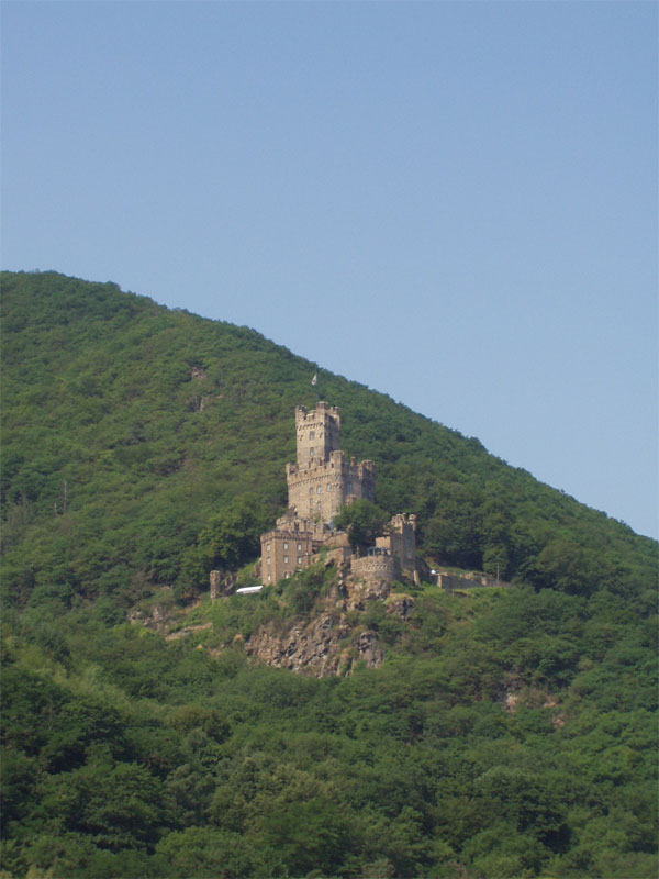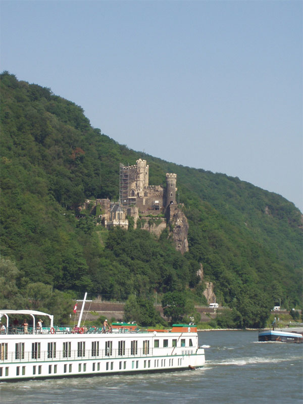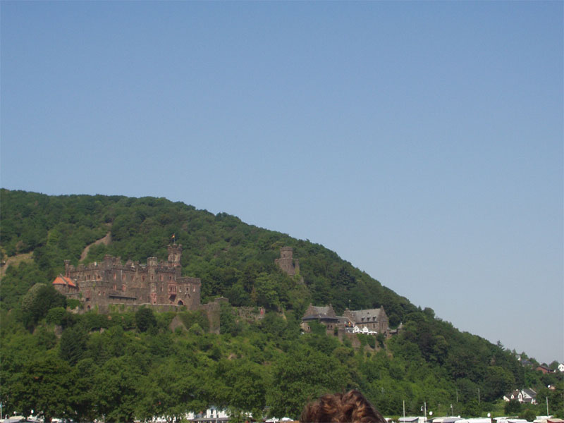 写真としては、もう船に乗り込んでいますが、乗る前に少しごたごたもある訳です。 船に乗る方法が分からず、係りの人に尋ねるとチケットを買うことなく乗船。ジャーマンレイルパスを見せただけ。 本当に良かったのかと、思うぐらいあっさり乗れました。よかったのでしょうか? 何度もいいますが、旅行する前には現地の言葉覚えましょうね。 そしてクルージングスタート! 席を陣取り、ビールを片手にイチゴをほうばりながらのクルーズ。素敵です。 両岸とも思ったより近くに見え、古城にとても期待が高まります。