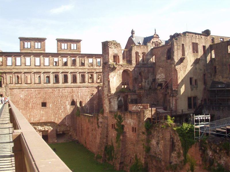 ちなみにハイデルベルク城というのは、1300年にライン・プファルツ選帝侯の居城として建てられたものらしいです。17世紀に2度あった戦争(30年戦争、オルレアン継承戦争)でハイデルベルク城は破壊されて、このような姿で現存しています。