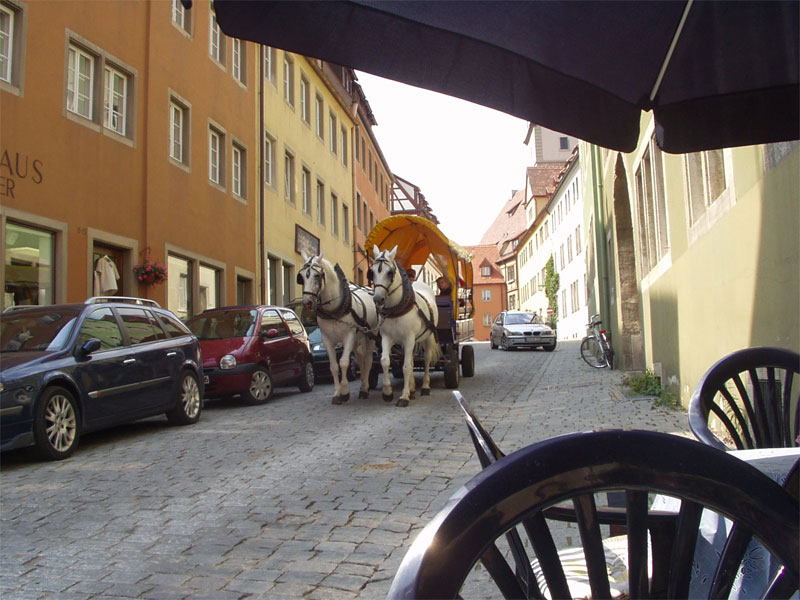今日はハイデルベルクからローテンブルクにバスで移動します。 ホテルで朝食を採り、タクシーでハイデルベルクの中央駅へ。 そこから、ヨーロピアンバスという長距離バスに乗って行きます。バスが来るまでまだ時間があったので、駅の中や周りを探索。 しばらくして、バスが来た。本によると、このバスは7月あたりはとても混むと書いてあったので、日本からインターネットで予約してチケットをとっておいた。 だけど、実際に乗り込んだのは私たちを含めて3組。ガラガラです。