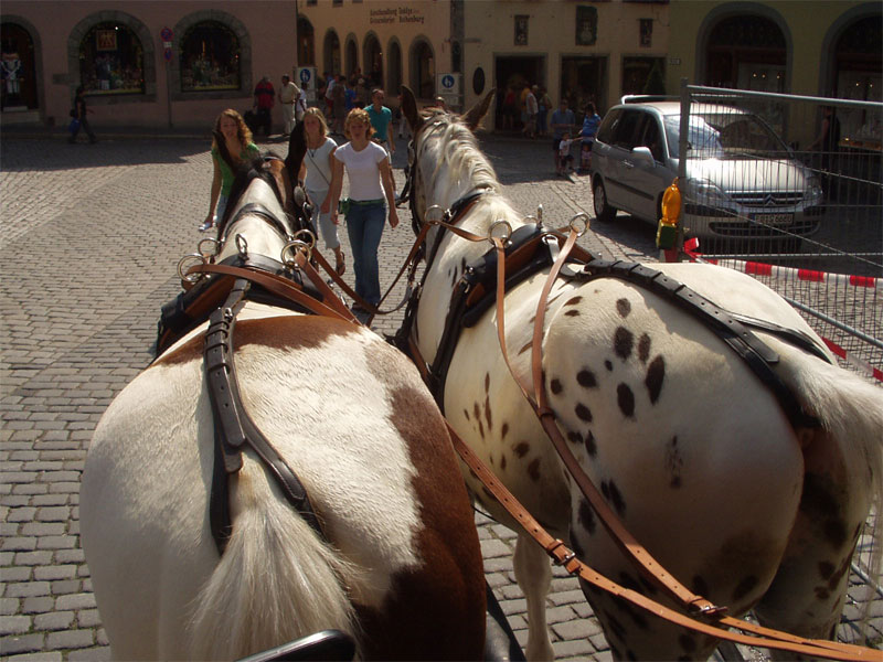 今日は旅行7日目。つまりちょうど真ん中。 本日はかわいらしい、ローテンブルクを出て同じロマンティック街道内のネルトリンゲンに向います。 移動にはローテンブルクに来るまでにも使ったヨーロッパバスを利用します。 しかし、このバスは1日に1本しか走っていない。 ローテンブルクの発車時刻は12:05だったので、午前中は馬車に乗って過ごすことに。