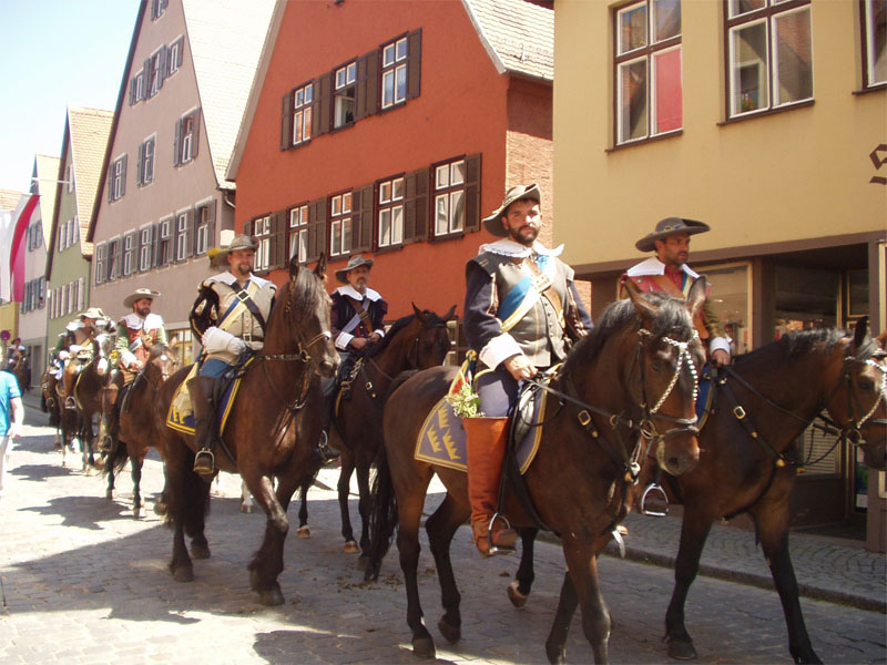 昔の兵隊さんや町の人の服装をした人がパレードや歴史劇をするお祭りらしいです。