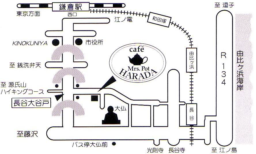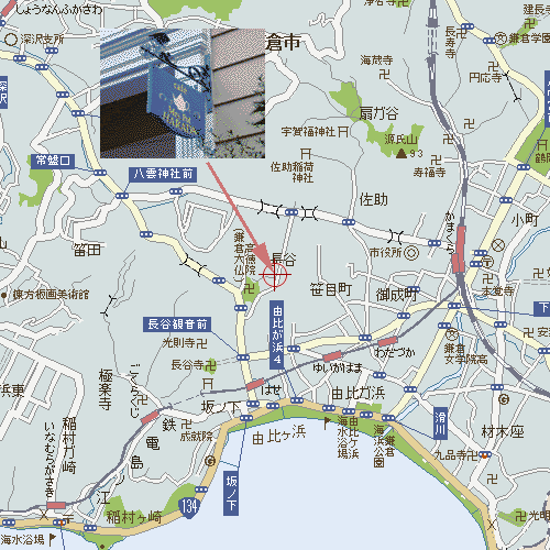 JR鎌倉駅西口(裏駅)から西へ進み、「長谷大谷戸」信号を南へ400m。