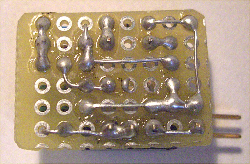 実体配線図の通り、6 x 8 のユニバーサル基板に実装していく。