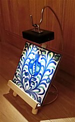 ステンドグラスランプ (二号機) 市販のステンドグラス(100V 仕様)をキャンプでも使えるようモバイルバッテリー駆動にし、さらに白色と電球色で点灯できるようにしたもの。 詳細はコチラ。 |
