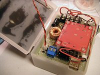 逆に固定に困ったのが太陽電池。セルが樹脂に封入されているだけでネジ穴が無いため、結局ケースの蓋部分にエポキシ系接着剤で貼り付けた。直射日光に当てた時の温度上昇による影響が不安だが、もし剥がれるようなら耐熱接着テープ(自動車のダッシュボードにアクセサリを貼り付ける時に使うやつ)を投入するしかあるまい。