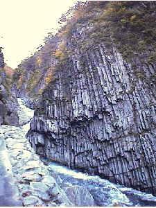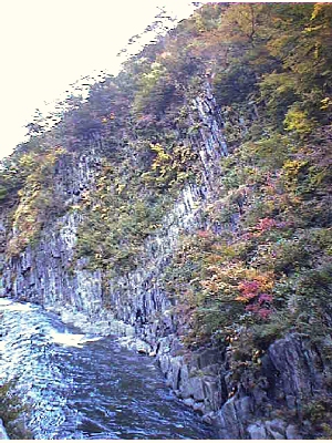 柱状節理の絶壁と急流の取り合わせのすばらしさは、