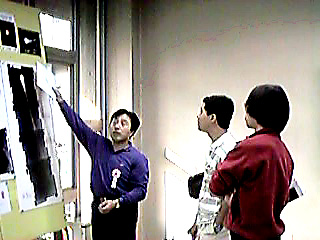 星の光の代わりにレーザを入射させ、人為的にヘアドライヤで(^_^;)ゆらぎを作ってデモ。