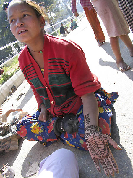 手の平に染料で文様を描くのは彼女たちのちょっとしたおしゃれだ。思い思いの文様を綺麗に描いていく。